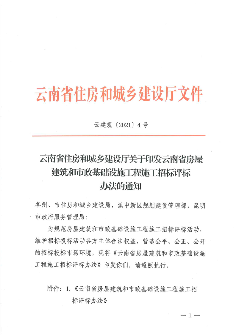 云南省住房和城鄉(xiāng)建設廳關于印發(fā)云南省房屋建筑和市政基礎設施工程施工招標評標辦法的通知(云建規(guī)【2021】4號)
