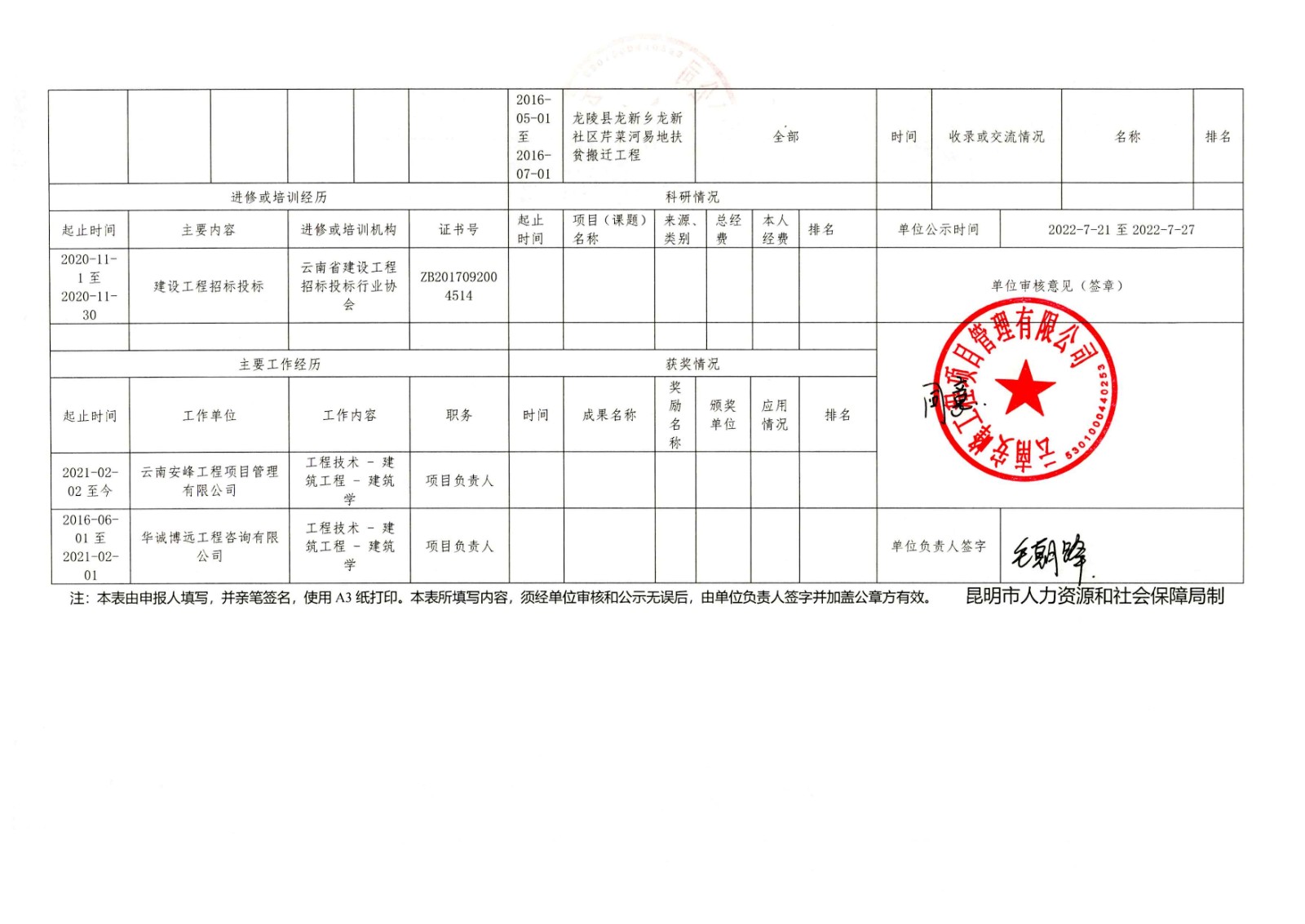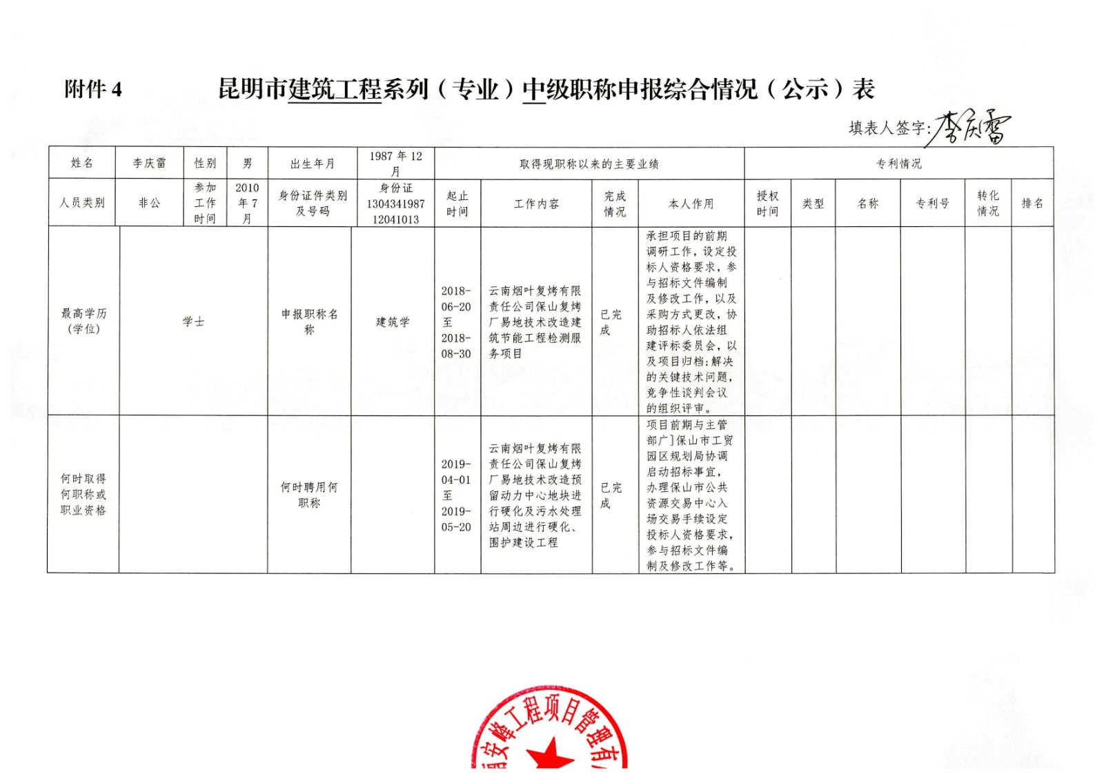 關(guān)于云南安峰工程項(xiàng)目管理有限公司員工李慶雷申報(bào)建筑工程系列(專(zhuān)業(yè))中級(jí)職稱(chēng)情況公示