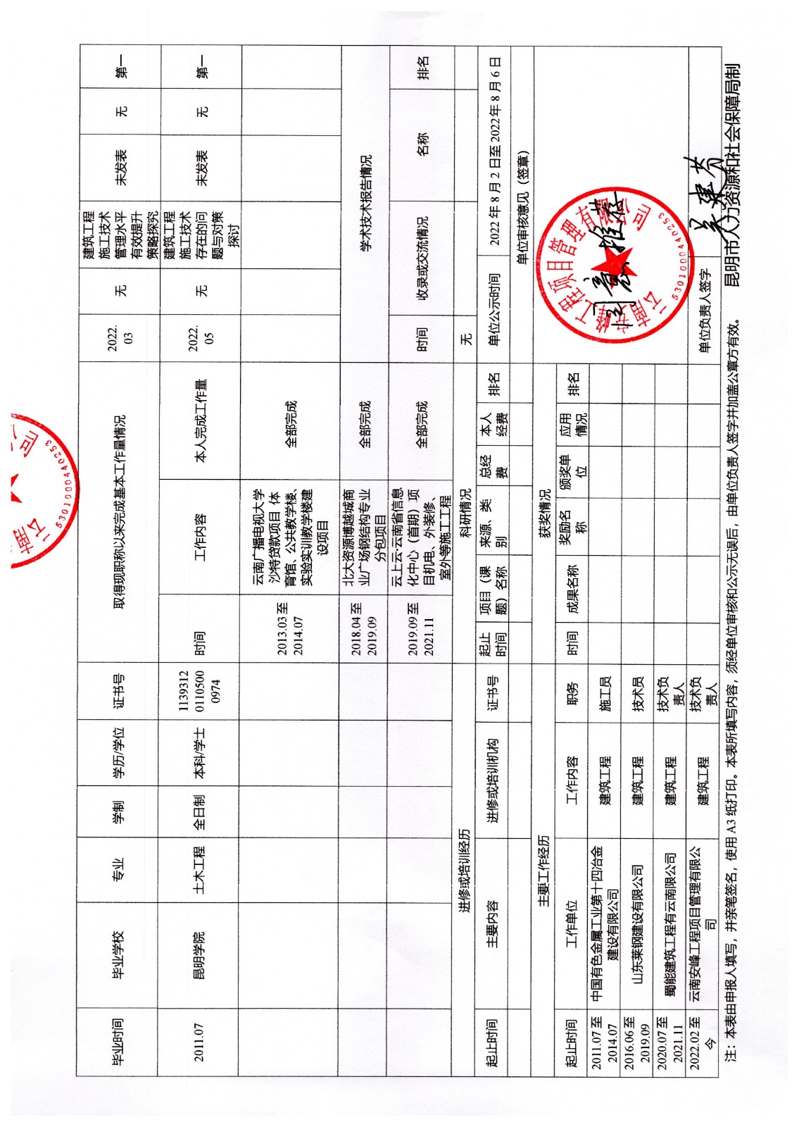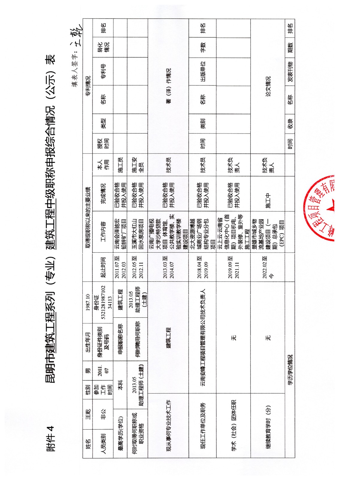 關(guān)于云南安峰工程項(xiàng)目管理有限公司員工王乾申報(bào)建筑工程系列(專(zhuān)業(yè))中級(jí)職稱(chēng)情況公示